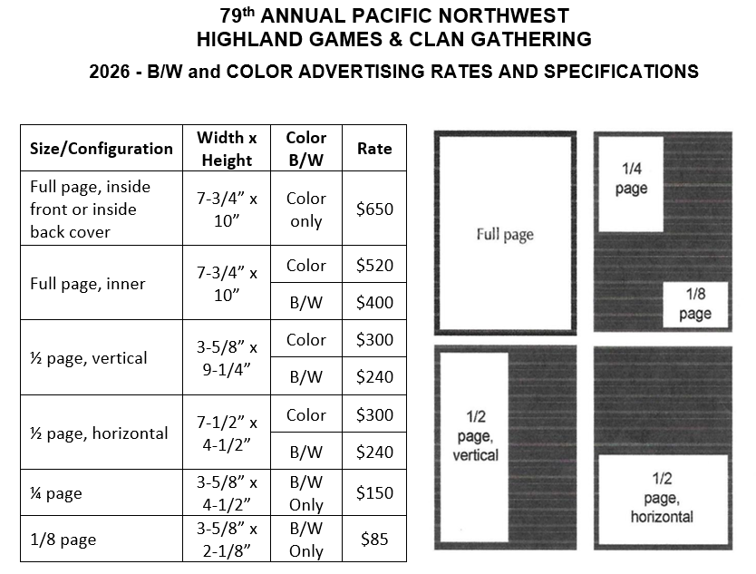 The Games are the sixth oldest in the USA, the largest in the northwestern USA, and feature Highland dancing, piping, drumming, pipe band competitions, and Scottish athletic events. Also, the Avenue of the Clans and the Glen of the Clans showcase various Clans, societies, and vendors. The vendors market clothing and other goods from the British Isles and beyond. In addition to the hundreds of competitors who will take part in our Games, we anticipate that upwards of 20,000 spectators from the USA, Canada, and other parts of the world will visit and enjoy a “wee bit of Scotland” right here in the Pacific Northwest.